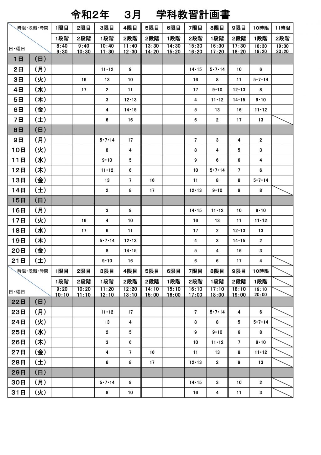令和2年4月 学科教習計画書