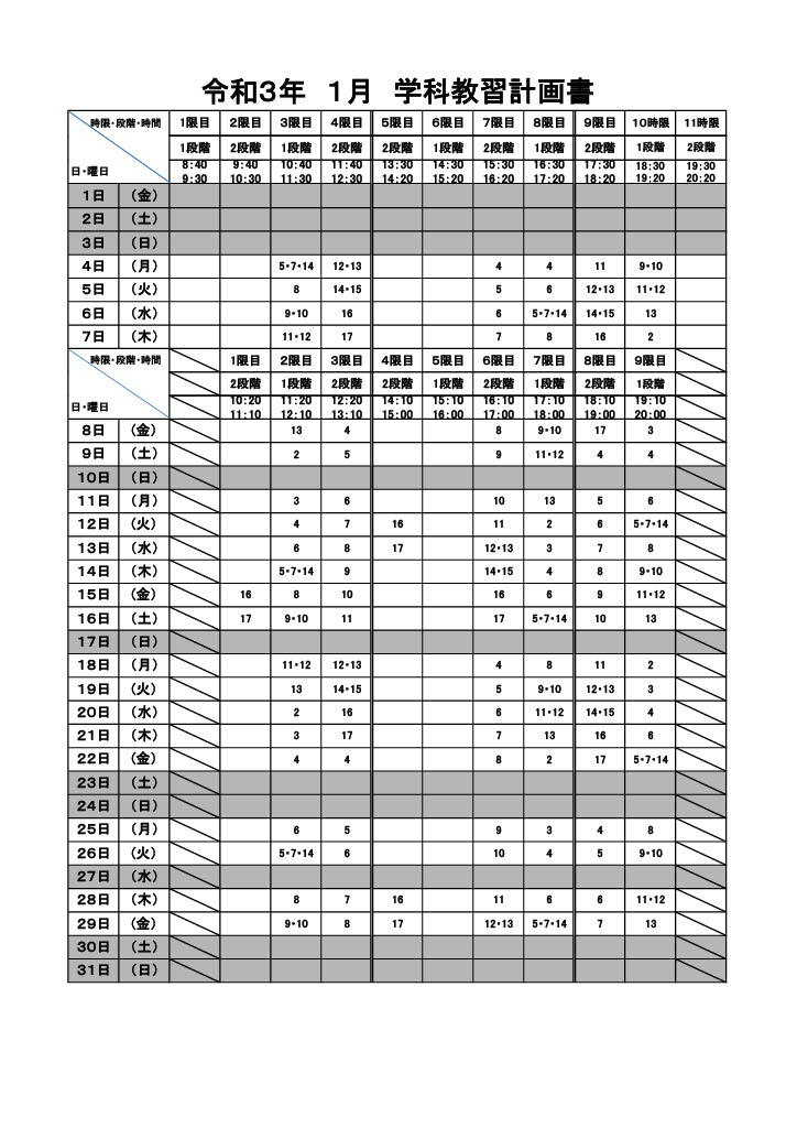 令和3年 1月 学科教習計画書