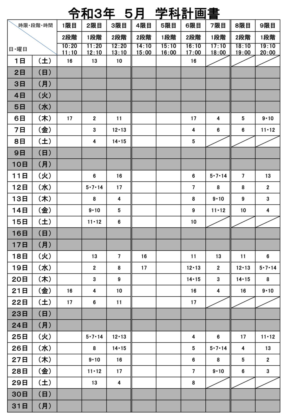 令和3年 5月 学科教習計画書